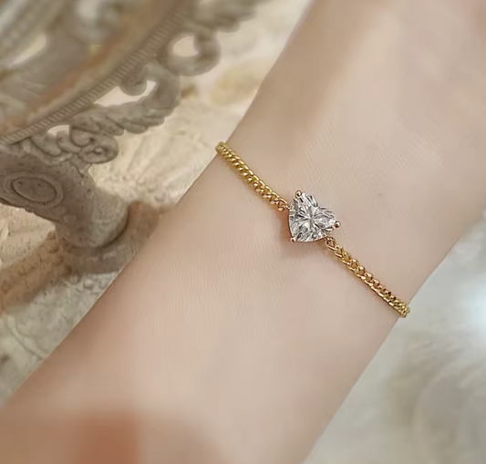 Sale price 3,200.00 NISA bold expression of love with timeless elegance.This striking bracelet features a heart-shaped lab-grown diamond set into a refined 18K yellow gold Cuban link bracelet, combining classic romance with contemporary style. The 1.10-carat diamond, graded E color and VS1 clarity, delivers exceptional brilliance and a beautifully bright sparkle. Crafted in solid 18K yellow gold, the iconic Cuban link design adds presence and sophistication, making this... -
