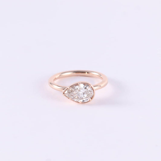 Sale price €1.282,00Modern elegance with a soft, romantic touch.This beautiful ring features a 1.00-carat pear-shaped lab-grown diamond, set in a sleek bezel setting that offers both contemporary style and everyday security. Graded E color and VS1 clarity, the diamond displays exceptional brilliance, purity, and a bright, refined sparkle. Crafted in warm 14K rose gold, the bezel setting gently frames the diamond, enhancing its graceful pear silhouette while... -