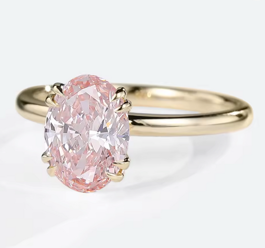 Sale price €1.759,00This stunning solitaire ring features a 1.5 carat pink oval-cut lab-grown diamond, graded D color, VS1 clarity, and created with zero emissions. Set in warm 14K yellow gold, the elegant oval silhouette enhances the diamond’s soft blush tones while offering timeless brilliance and refinement. The solitaire setting allows the diamond to take center stage, creating a clean and sophisticated look that is both modern and... -
