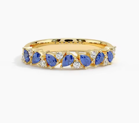 Sale price €1.111,00Inspired by timeless elegance, this half eternity sapphire and diamond ring blends classic charm with refined craftsmanship. Crafted in 14K gold, available in white or yellow, the Olivetta-style design features a harmonious alternation of deep blue sapphires and brilliant diamonds for a rich, vintage-inspired look. The half eternity setting offers beautiful sparkle while remaining comfortable for everyday wear, making it an ideal choice for a... -