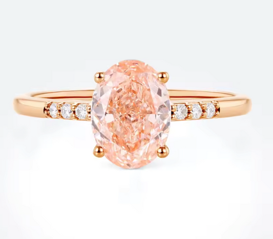 Sale price €2.396,00This elegant luxury ring features a captivating 1.5 carat pink oval lab-grown diamond D VS1 as its center stone, set in warm 14K rose gold for a soft and romantic finish. The oval cut enhances brilliance while beautifully highlighting the delicate pink hue. The band is adorned with round lab-grown pavé diamonds, adding continuous sparkle and elevating the overall design with refined sophistication. The combination... -