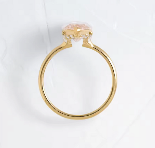 Sale price €3.008,00This striking engagement ring features a 3.0 carat pink marquise-cut lab-grown diamond, secured in a sleek V-prong setting that enhances the stone’s elongated silhouette while offering both elegance and protection. Crafted in 14k yellow gold, the design blends modern refinement with timeless appeal. The marquise cut creates a graceful, lengthening effect on the finger, while the V-prongs highlight the diamond’s shape and brilliance from every angle.... -